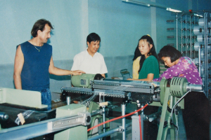 业务扩大,产品销往江苏、上海、广东等地;经编车间试行季度承包;被评为“嘉兴市勤工俭学先进集体”
