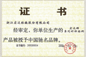 “ufc竞猜平台经编”成功上市,成为国内经编行业首家上市公司;ufc竞猜平台品牌获得中国驰名商标和中国名牌产品荣誉称号;被评为浙江省“创建和谐劳动关系先进企业”